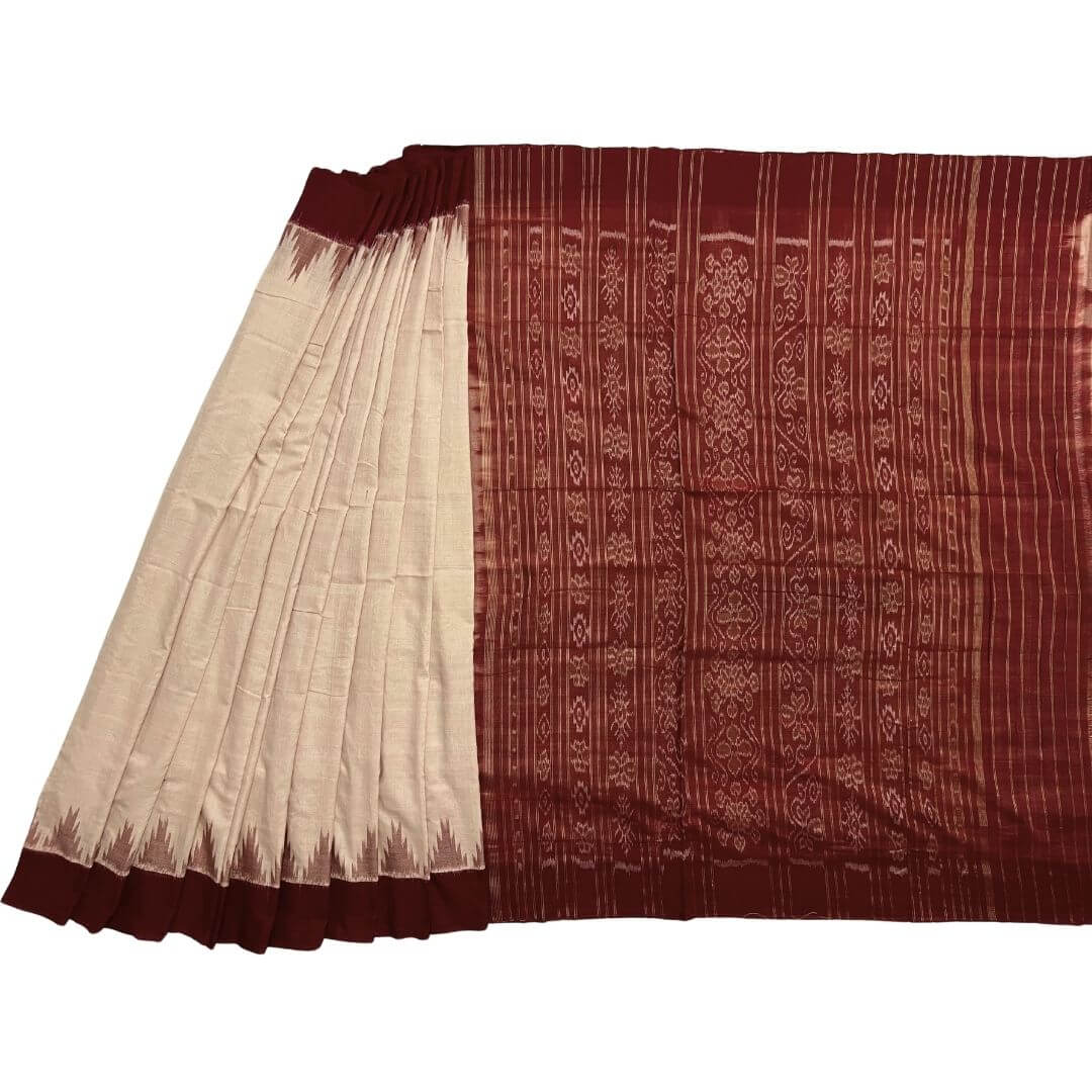 Handwoven Khadi Cotton | Sambalpuri Saree - Bisque Colour